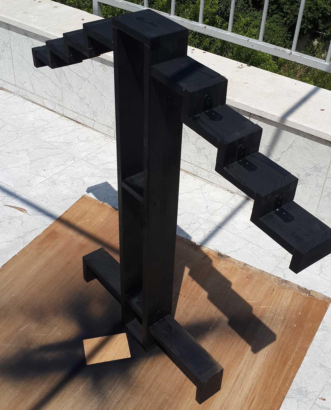 Lets start with the last one as it is the easiest to answer: The size will each step is enough for 1 bottle and as the build is modular I can always add more or remove as needed, as for the body and stocks, the body was the one that actually set every thing as I do a re-use from available wood - it is what I have in stock at the moment - easy!